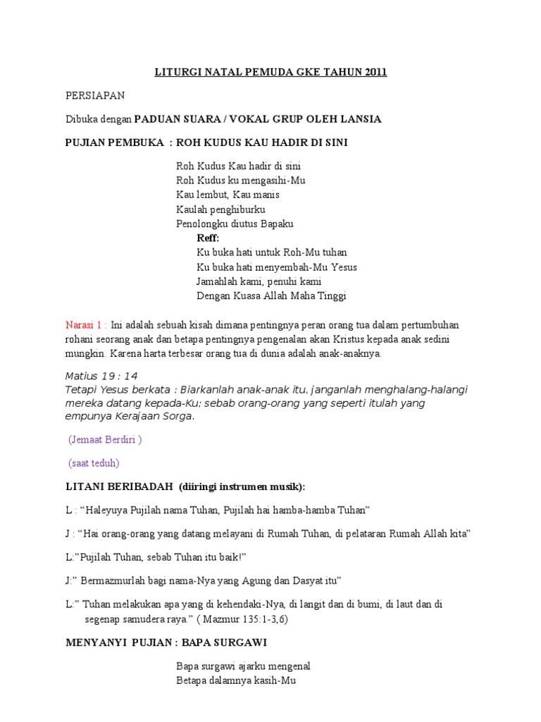 Peristiwa natal hendak memperbaharui sukacita dan pengharapan tentang dunia baru yang dijanjikan allah. Liturgi adalah bahagian dari ibadah, sedangkan ibadah adalah bahagian dari hidup, jadi hidup dan liturgi harus nyata di dalam ibadah. Karena banyaknya yang meminta file liturgi di mastimon.com maka untuk. • dokumentasi natal ppgt jemaat salubanga 21 desember 2020». Berasal dari hatinya, ia tergerak oleh belas kasihan yang dalam.