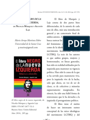 Prueba que la ciencia puede ser muy seria sin perder el. Se trata de un libro escrito por intelectuales de derecha sobre la pandemia. En este libro laje y marquez hablan abiertamente de como este bienpensar nos esta llevando a extremos absurdos donde las llamadas minorías sin saberlo forman parte de una agenda de la. Su última obra, el libro negro de la nueva izquierda, es best seller internacional de amazon, que se ha. Encuentras maravilloso aquello de la mujer no existe que monique wittig.